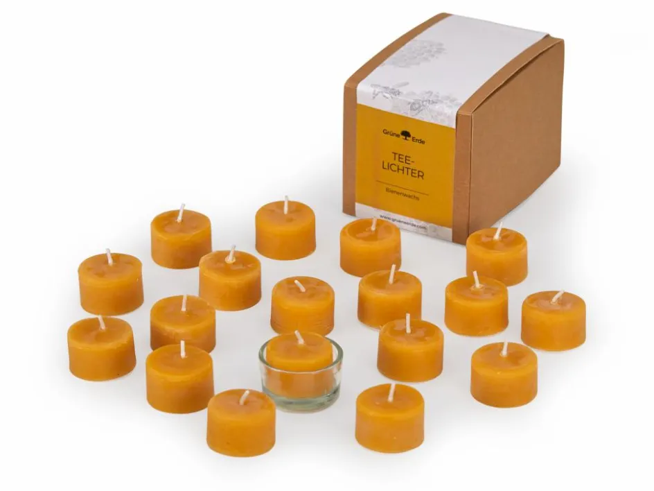 Grüne Erde 18 Teelichter aus Bienenwachs, ohne Duft, 1 Glaseinsatz