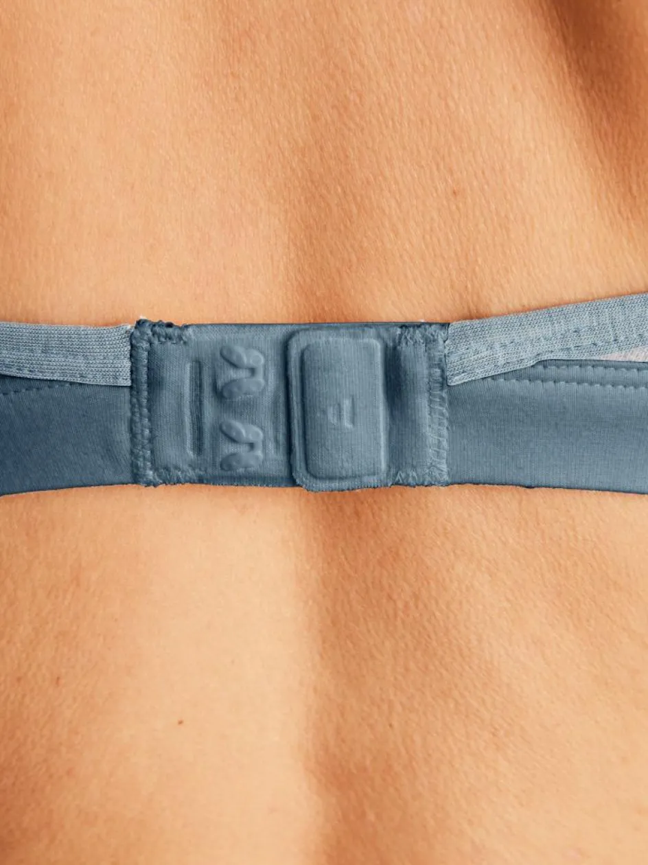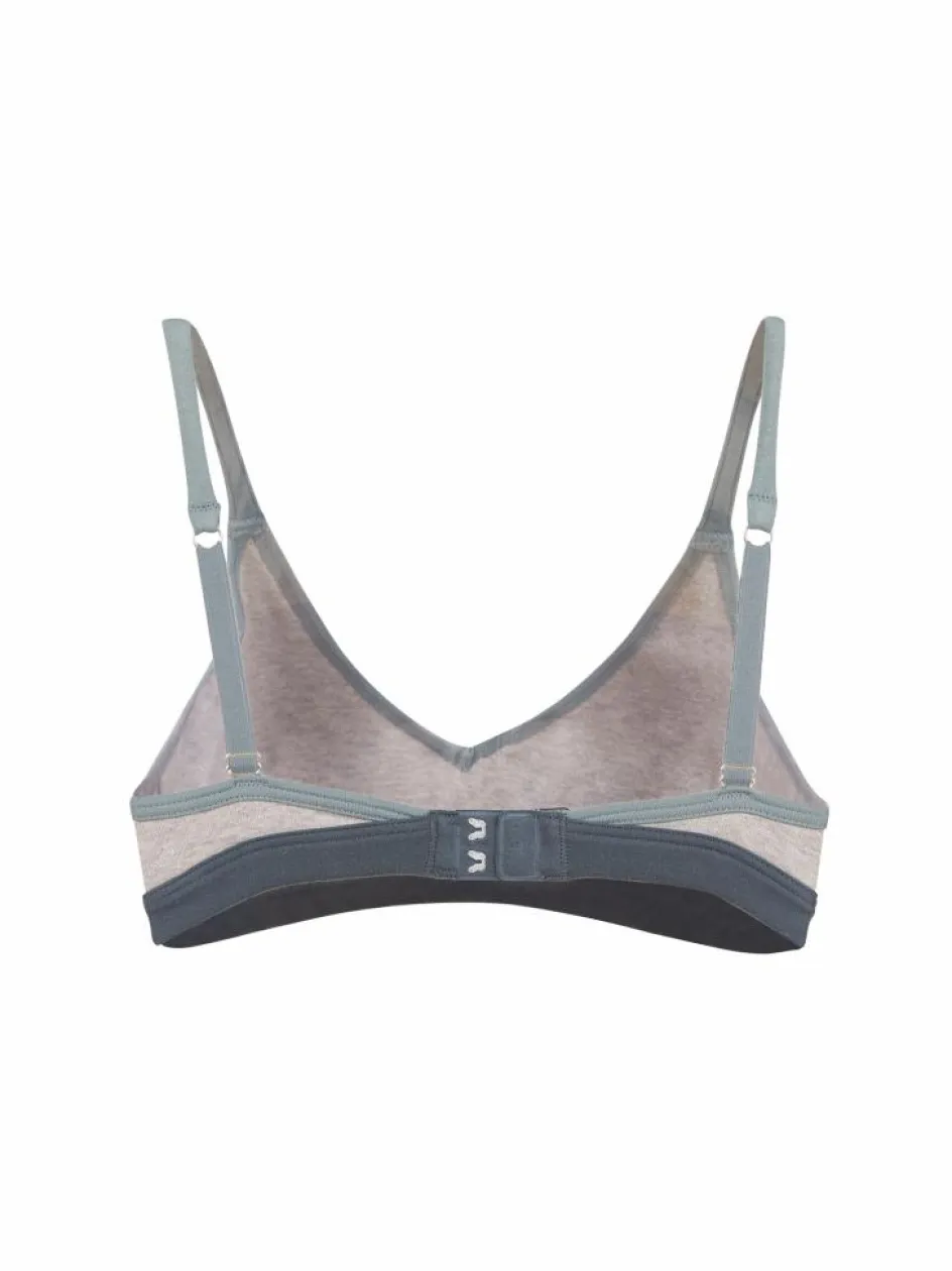 Das Modell in den harmonisch abgestimmten Blau- und Petroltönen ist kaum spürbar und besonders sanft zur Haut. Es schmiegt sich an und drückt nicht. Die Bralette in stabiler Baumwoll-Qualität überzeugt zur Gänze ohne Elasthan. Die verstellbaren Träger sorgen für einen guten Halt, der metallfreie Verschluss für ein angenehmes Tragegefühl. Für das gewisse Etwas sorgt der in Kontrast gesetzte, weiche Gummibund.