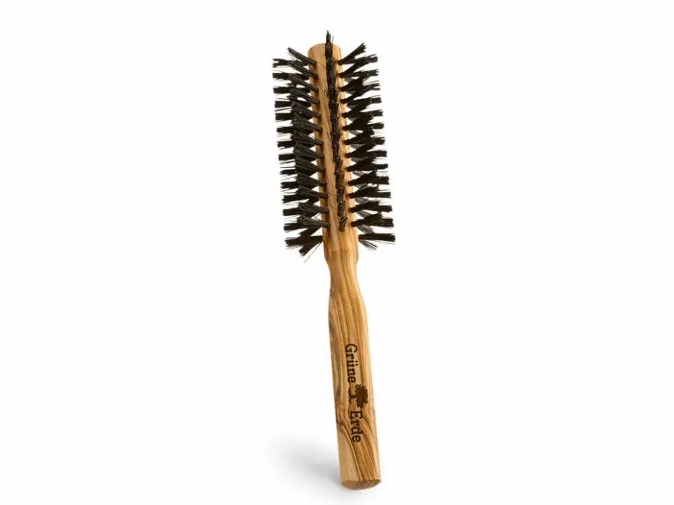 Grüne Erde Föhnbürste mit Wildschweinborsten, ca. 21 cm, Olivenholz, 10 Borstenreihen