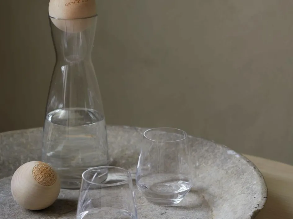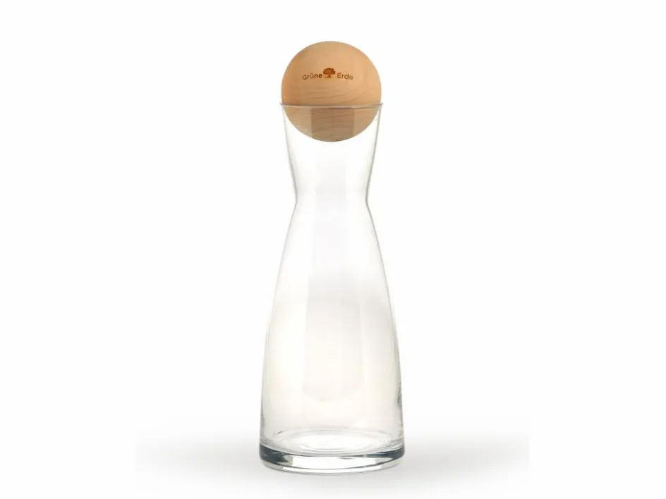 Grüne Erde Glaskaraffe mit Zirbenkugel, 1 l, H 25,5 cm, Kugel = 7,0 cm