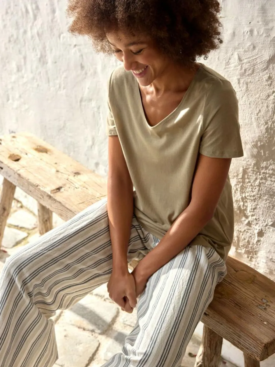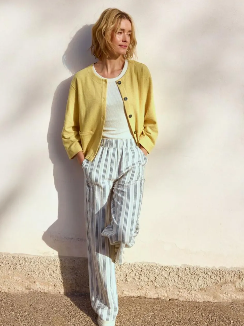 Grüne Erde Hose aus Bio-Leinen und Baumwolle, 60 multistreif grün, 38, GOTS