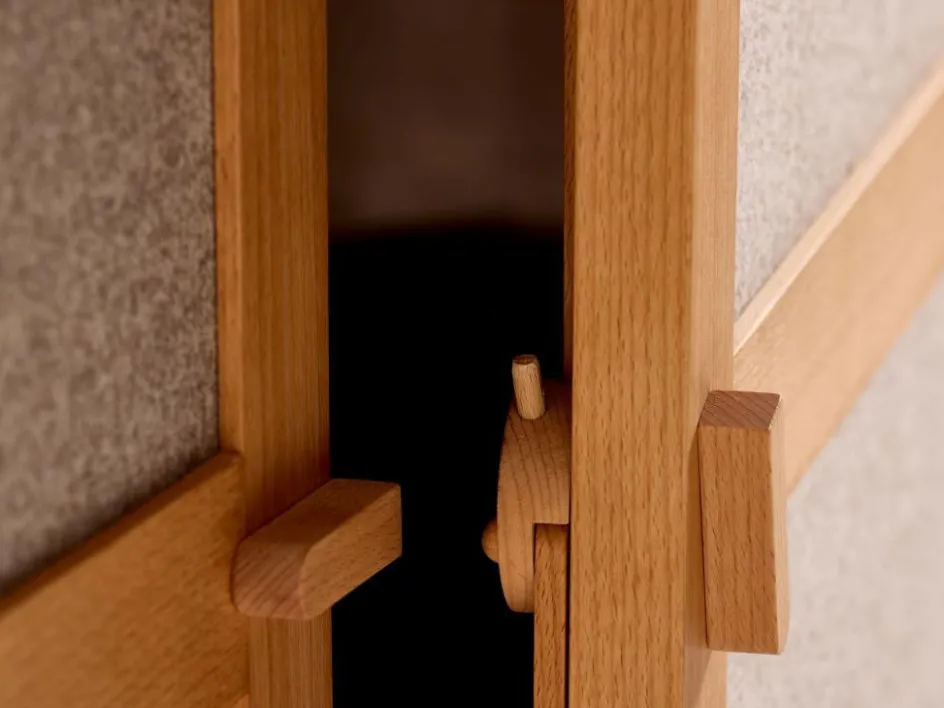 Das harte, kraftvolle und widerstandsfähige Buchenholz verlangt aufgrund seiner natürlichen Kraft viel Erfahrung und Fingerspitzengefühl bei der Verarbeitung. Durch das vorsichtige, schonende Dämpfen des – in frisch geschnittenem Zustand sehr hellen – Holzes im eigenen Saft bekommt die Buche eine zart hellbraune Tönung und nimmt durch die Behandlung mit natürlichem Öl eine kräftigere, an Zimt erinnernde Farbe an.Außerdem bewirkt der Dämpfprozess, dass das Buchenholz bei wechselnder Luftfeuchtigkeit (Sommer/Winter) deutlich weniger quillt und schwindet.- Rohstoffherkunft