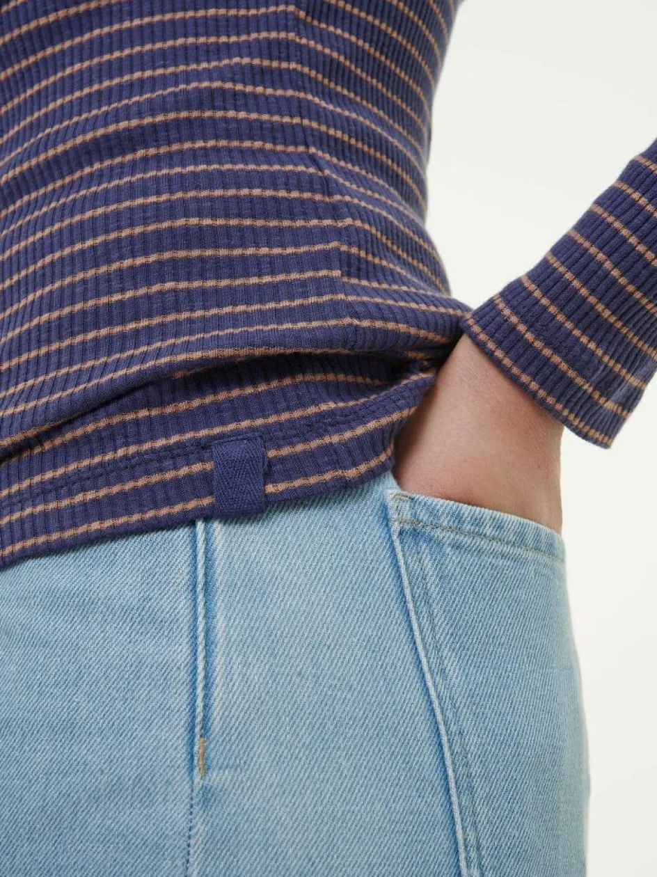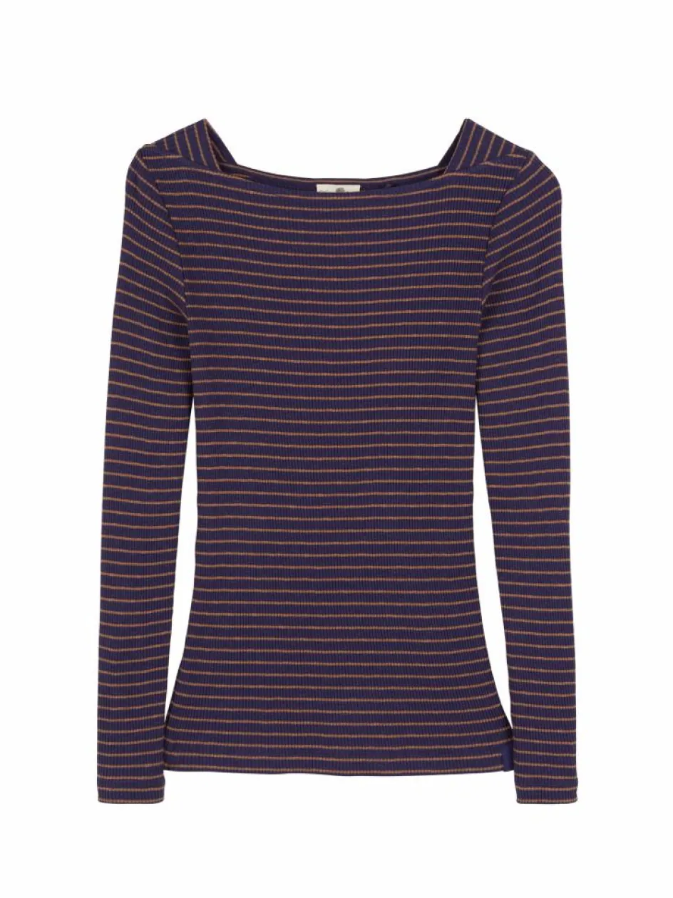 Kaum wegzudenken: figurbetontes Langarm-Shirt aus hautfreundlicher Baumwolle. Das Modell mit der Ripp-Struktur hat einen weichen Griff, ist elastisch und kann mühelos kombiniert werden. Es überzeugt mit einem U-Boot-Ausschnitt und einem eingesetzten Keil an der Schulter, welcher in der Rippe konträr verläuft. Abgerundet mit einer Blende am Hals- und Ärmelloch.