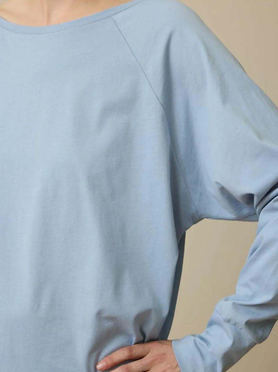 Anschmiegsames Fledermaus-Shirt in feiner Single-Jersey-Qualität. Weiche Baumwolle sorgt für ein sanftes Gefühl auf der Haut, eine lockere Silhouette mit Fledermausärmeln für angenehmen Tragekomfort. Abgerundet wird das Modell mit dem U-Boot-Ausschnitt mit einem modernen Cut-Out auf dem Rückenteil sowie mit hohen Bündchen am Saum und Ärmelsaum.