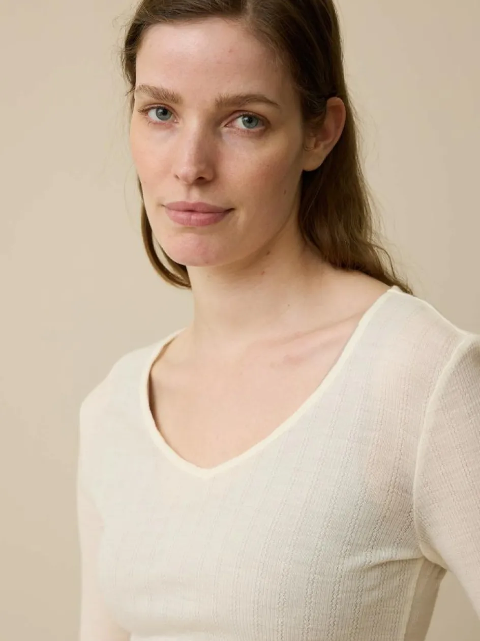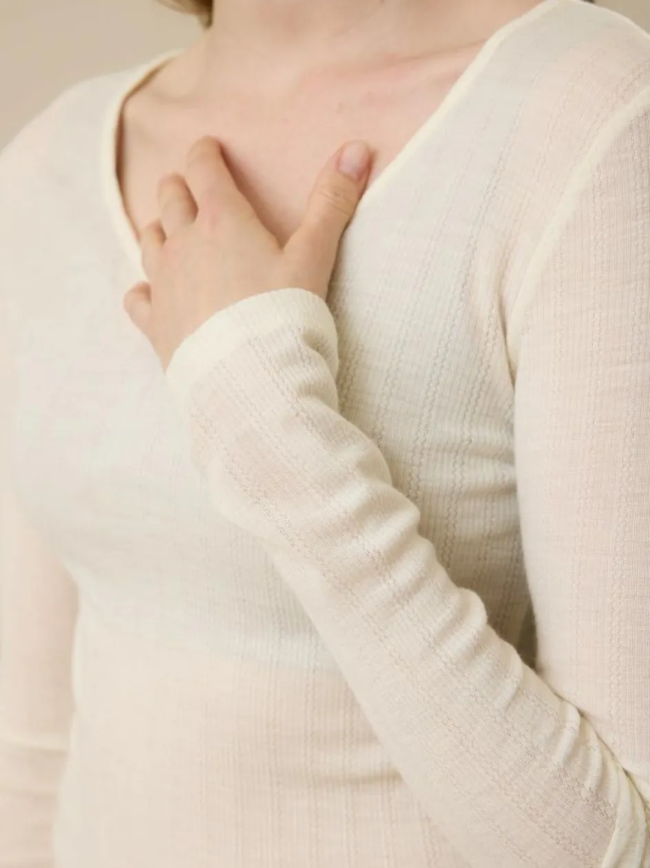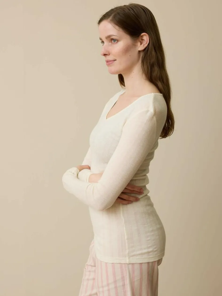 - mit langen Ärmeln und abgerundetem V-Ausschnitt