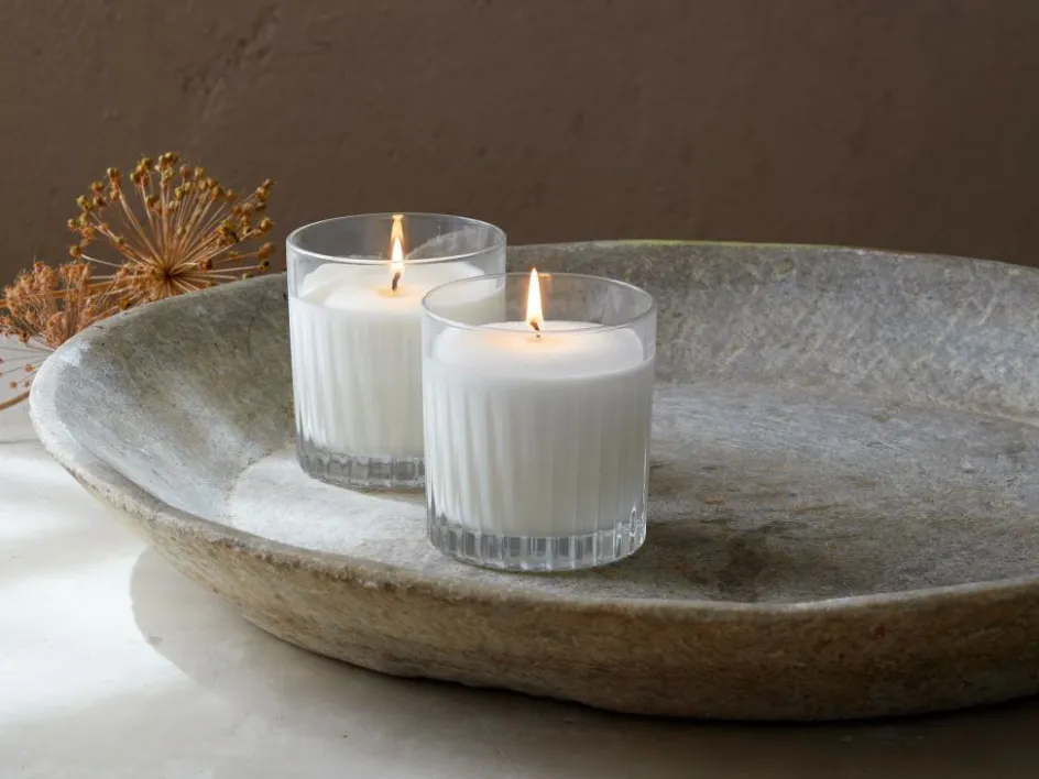 Grüne Erde Natürliche Duftkerze BERGGIPFEL im Trinkglas mit Rillenschliff, ø 8,5 cm, H 9 cm