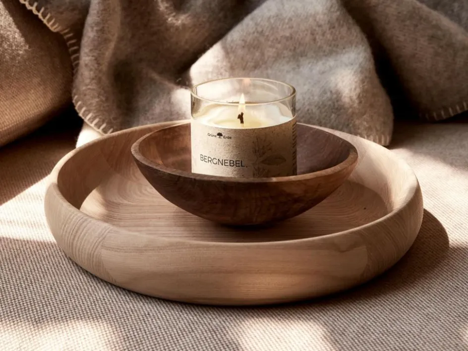 Grüne Erde Natürliche Rapswachskerze BERGNEBEL im rezyklierten Glas, Baumwolldocht, 325 ml, H 9,5 cm, ø 8,5 cm
