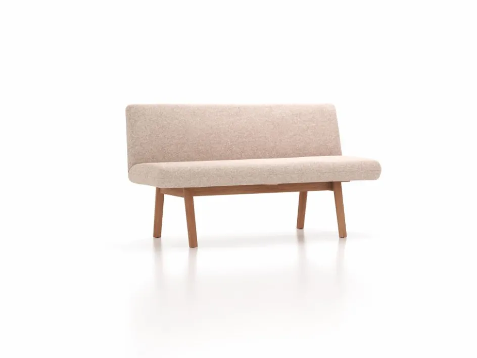 Getragen wird der Polsterteil von einem Fußgestell mit gerundeten Ecken und Kanten. Beide Teile sind von wieder lösbaren Holzsteckverbindungen fest zusammengehalten. Die nach innen versetzte Position der Bankbeine erleichtern die Bewegungsfreiheit der am Tisch Sitzenden. Schönes Designdetail: Die nach oben verlängerten Hinterbeine der Bank überlappen die Rückenlehne und stützen diese gleichsam. So macht Ketil auch freistehend gute Figur.