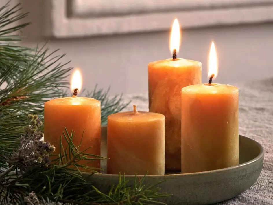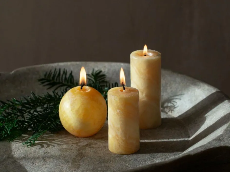 Grüne Erde Stumpenkerze aus Bienenwachs, , Höhe 10 cm, ø 5 cm, 1 Stk.