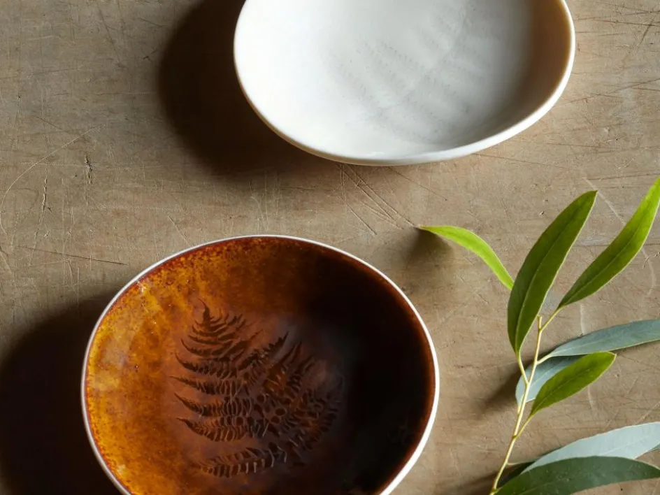 - die Blätter werden gesammelt, getrocknet und in das Tellerchen gepresst