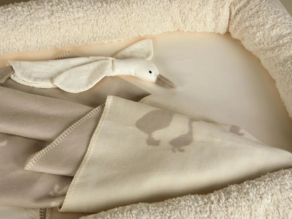 Die sanften Naturmaterialien dieser Erstausstattung sorgen für ein gut behütetes, wohlig warmes Nest.