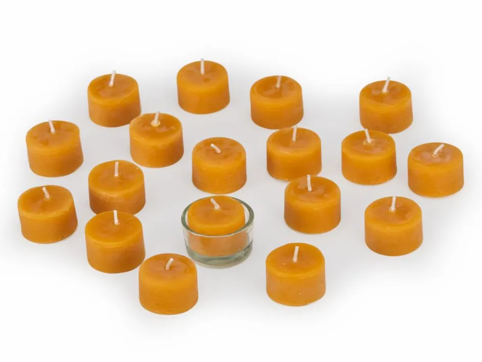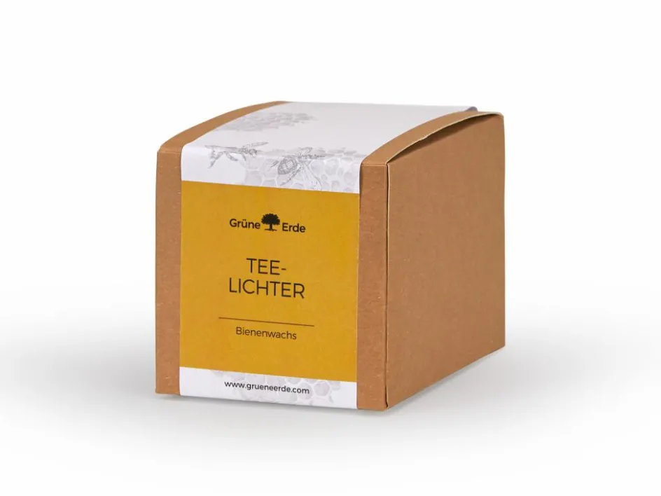 Grüne Erde 18 Teelichter aus Bienenwachs, ohne Duft, 1 Glaseinsatz