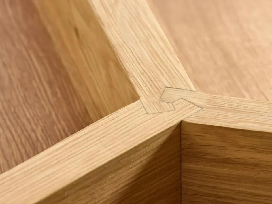 Der dreibeinige Mitsu (jap. drei) ist aufwendig gefertigt, erkennbar etwa am zentralen Verbindungsknoten des Fußgestells, einer eleganten, schlichten, gleichzeitig raffinierten und metallfreien Holzverbindung, an der man Parallelen zum klassischen japanischen Tischlerhandwerk Tategu-Shokunin entdecken kann: Jeder Teil wird so gefertigt, wie er sein soll, auch wenn man dies beim fertigen Möbel gar nicht mehr sieht.