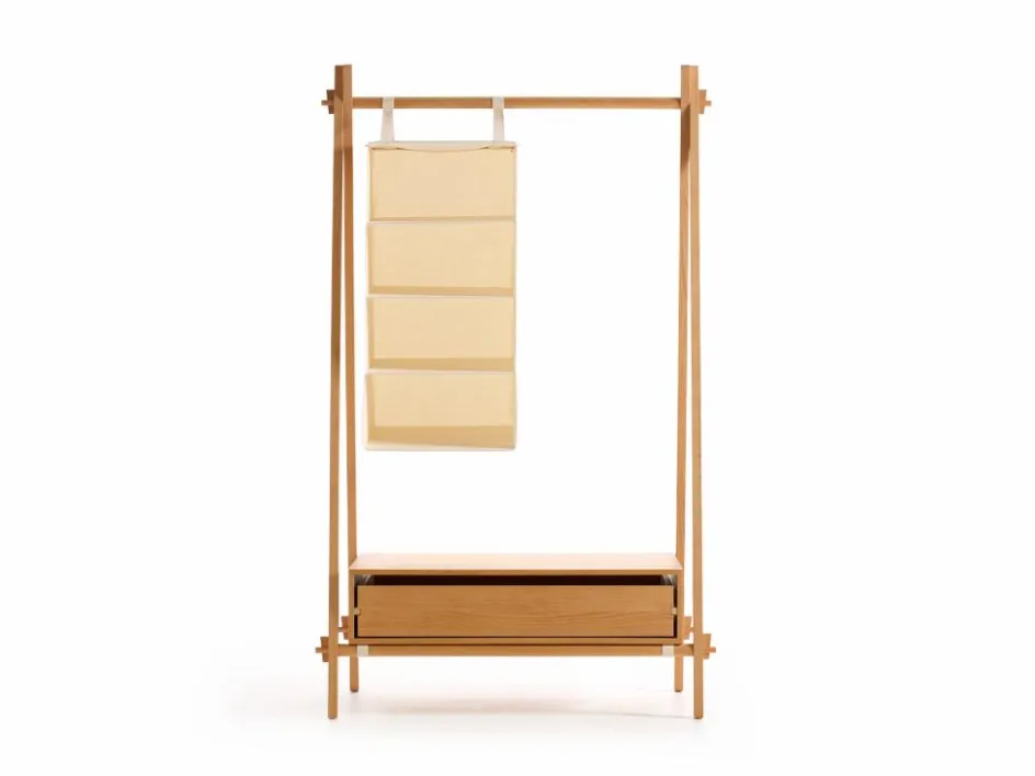 Die Hängefächer werden an der oberen Stange des Kleiderständers befestigt. Sie sind mit großer Sorgfalt in unserer Textilproduktionsstätte gefertigt, und mit bis zu 8 kg belastbar.
