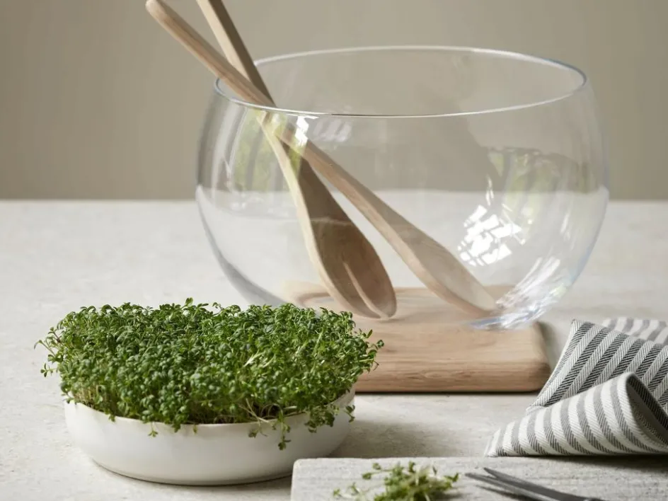 Grüne Erde Kresseteller aus weißem Terracotta, H 4 cm, ø 17 cm