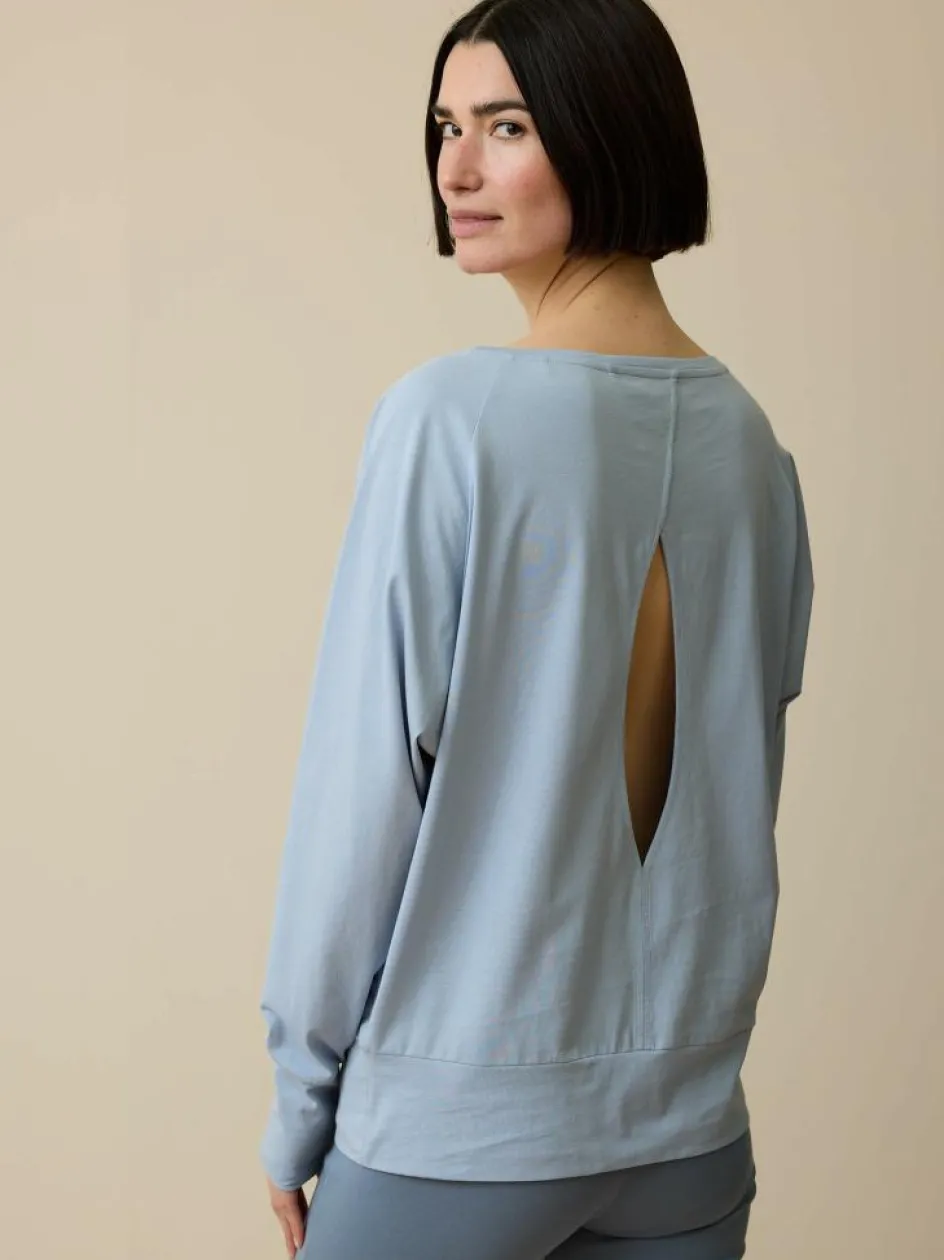 Anschmiegsames Fledermaus-Shirt in feiner Single-Jersey-Qualität. Weiche Baumwolle sorgt für ein sanftes Gefühl auf der Haut, eine lockere Silhouette mit Fledermausärmeln für angenehmen Tragekomfort. Abgerundet wird das Modell mit dem U-Boot-Ausschnitt mit einem modernen Cut-Out auf dem Rückenteil sowie mit hohen Bündchen am Saum und Ärmelsaum.
