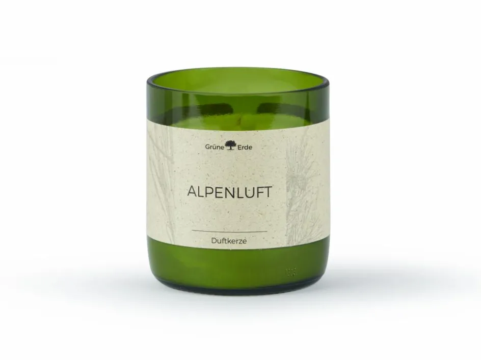 Grüne Erde Natürliche Rapswachskerze ALPENLUFT im rezyklierten Glas, Baumwolldocht, 325 ml, H 9,5 cm, ø 8,5 cm