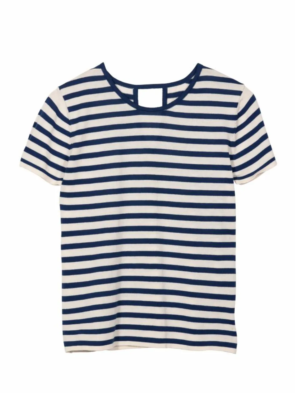 Leichter Kurzarm-Pullover aus hautfreundlicher Baumwolle kbA – in weicher Feinstrick-Qualität und legerer Passform. Die zarte Ringel-Dessinierung verleiht dem Modell eine feine, zurückhaltende Ausstrahlung, während der kleine V-Ausschnitt im Rücken mit einem dezenten Akzent überrascht. Ein stilvolles Basic für warme Tage – natürlich, weich und besonders.