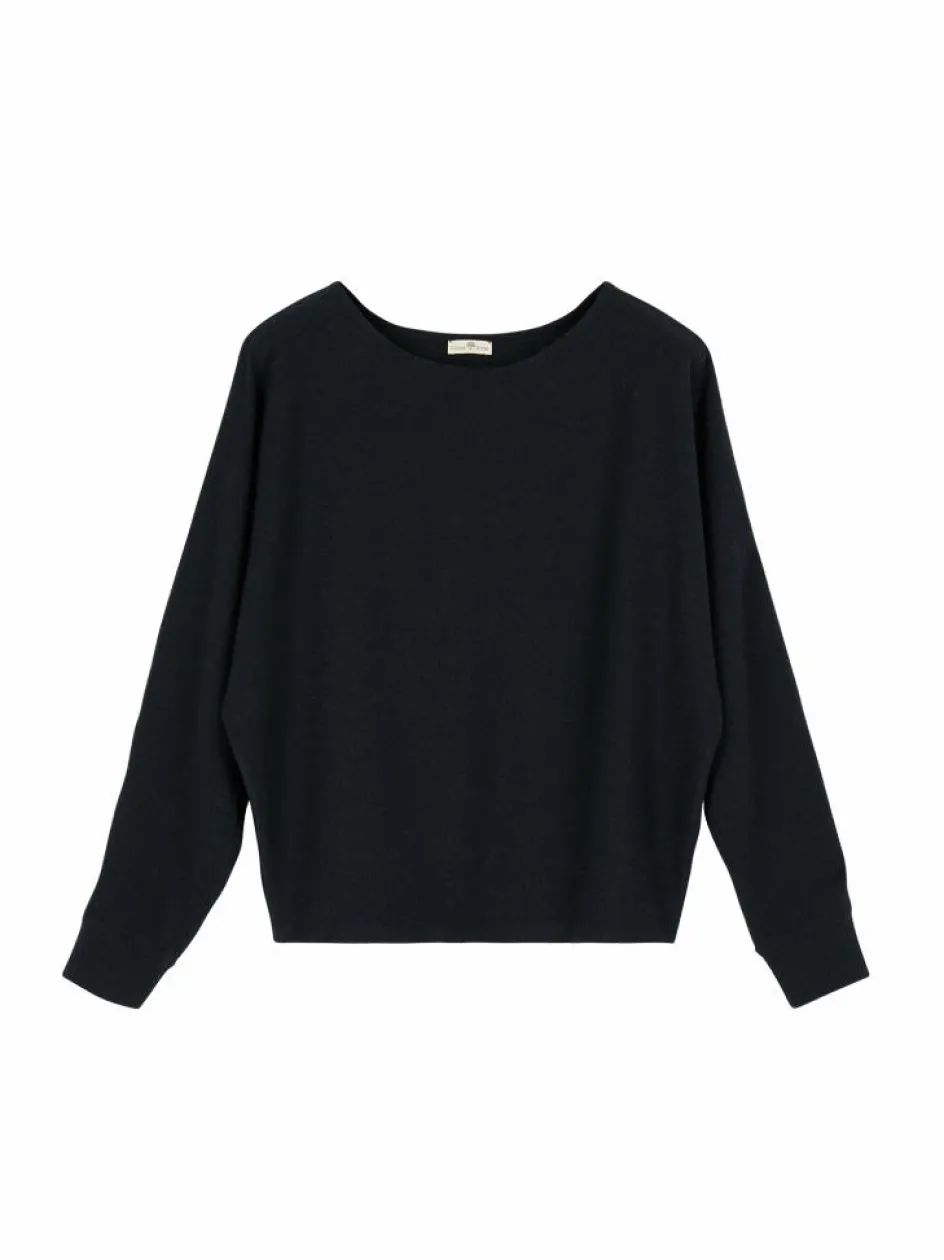 Quergestrickter Langarm-Pullover mit Fledermausärmeln und Rundhalsausschnitt, abgerundet mit breiten Bündchen an den Ärmelabschlüssen. Die hautfreundliche Kombination aus weicher Baumwolle und temperaturausgleichender Wolle ist die perfekte Mischung für die ersten kalten Tage. Locker geschnitten, vielseitig kombinierbar – chic oder leger.