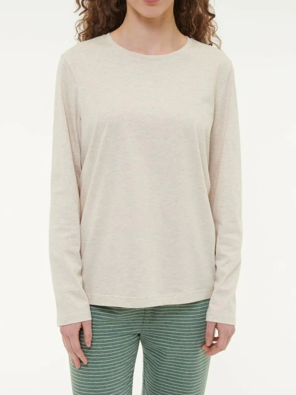 Lockeres Langarm-Shirt aus besonders hautfreundlicher Baumwolle: bequem, sanft zur Haut und weich im Griff. Das Oberteil in Single-Jersey-Qualität hat überschnittene Schulterpartien und einen Rundhalsausschnitt mit 1×1-Rippbündchen.