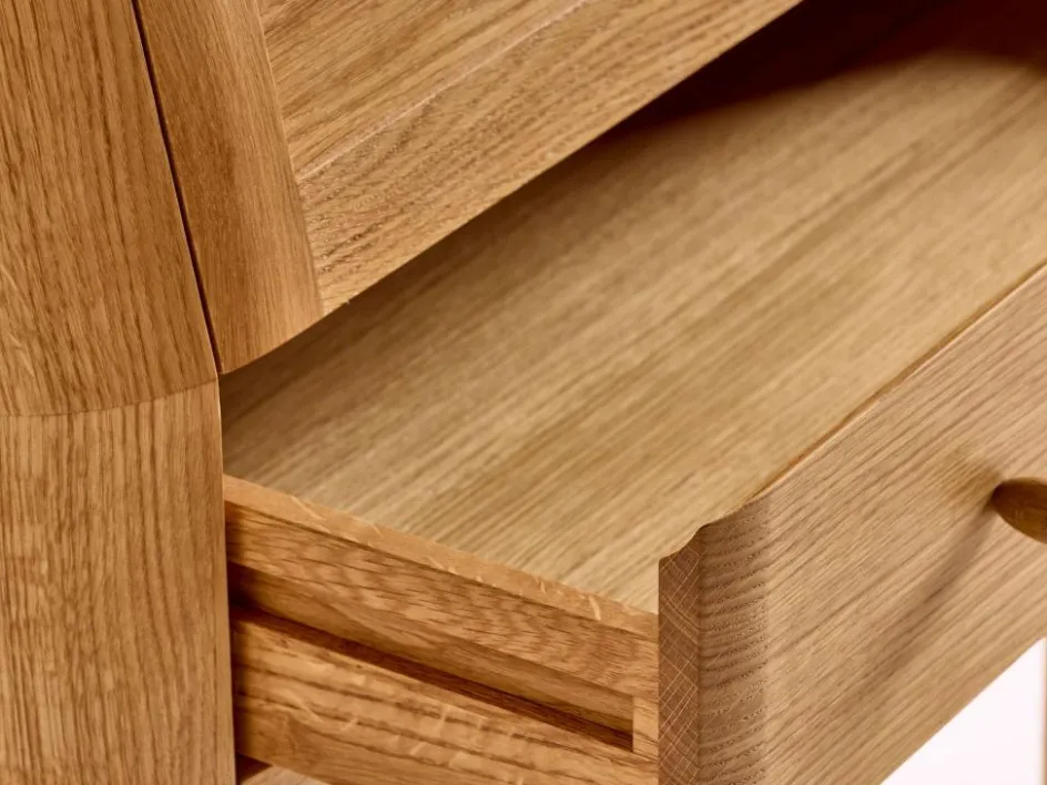 Vollholz aus nachhaltig bewirtschafteten Wäldern, handwerklich erstklassig verarbeitet; Der Korpus ist in traditioneller Rahmen-Füllung-Bauweise gefertigt: Rahmem aus Massivholz werden mit Füllungen aus verwindungsfreiem Schichtholz kombiniert; von Hand geölte Holzoberfläche.- Verarbeitet in
