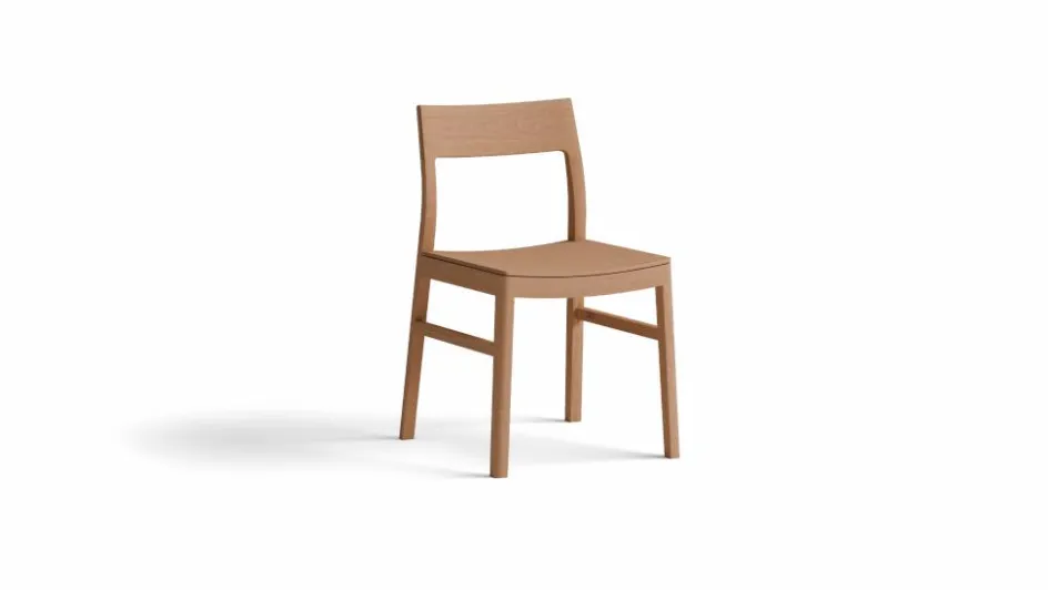Die beiden nach hinten geneigten Holme und die rückengerecht geformte Lehne sind „überblattet“, ebenso die Stuhlbeine und deren Verbindungssprossen: eine feinsinnige, metallfreie Holzfügetechnik.