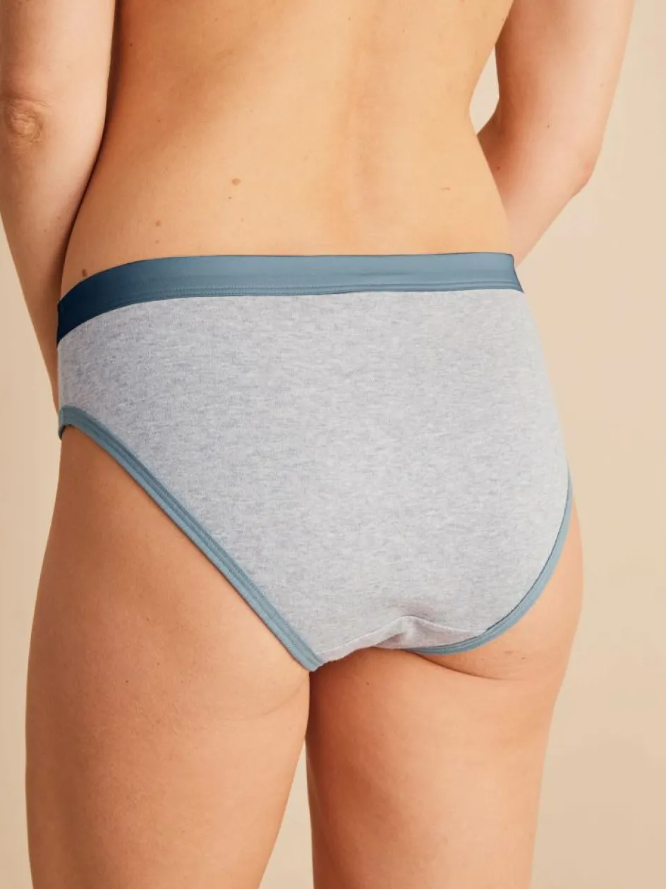 Der klassische Slip in sanftem Grau-Melange-Ton mit in Kontrast gesetztem Gummibund schenkt Ihnen ein optimales Tragegefühl. Die weiche Baumwoll-Qualität – ohne Elasthan – sorgt für ein sanftes Gefühl. Sie schmiegt sich ideal der Körperform an, ohne auszuleiern. Mit besonders weichem Beinausschnitt.