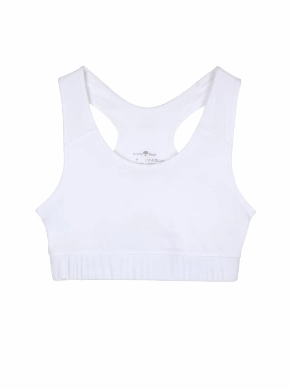 Sportliches Yoga-Bra-Top aus feiner Baumwolle und ohne Elasthan – anschmiegsam, weich, flexibel. Das Bustier ist doppelt gearbeitet, mit sportivem Boxer-Rücken, tiefem Armausschnitt und breitem Gummibund am Saum. Dank der durchdachten Schnittführung entsteht natürlicher Tragekomfort und optimale Bewegungsfreiheit.
